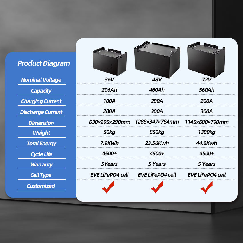 OEM ODM LiFePO4 24v 36v 48v 72v 280Ah แบตเตอรี่ลิเธียมไอออน Lifepo4 แบตเตอรี่ลิเธียม แบตเตอรี่รถกอล์ฟแบบชาร์จไฟได้