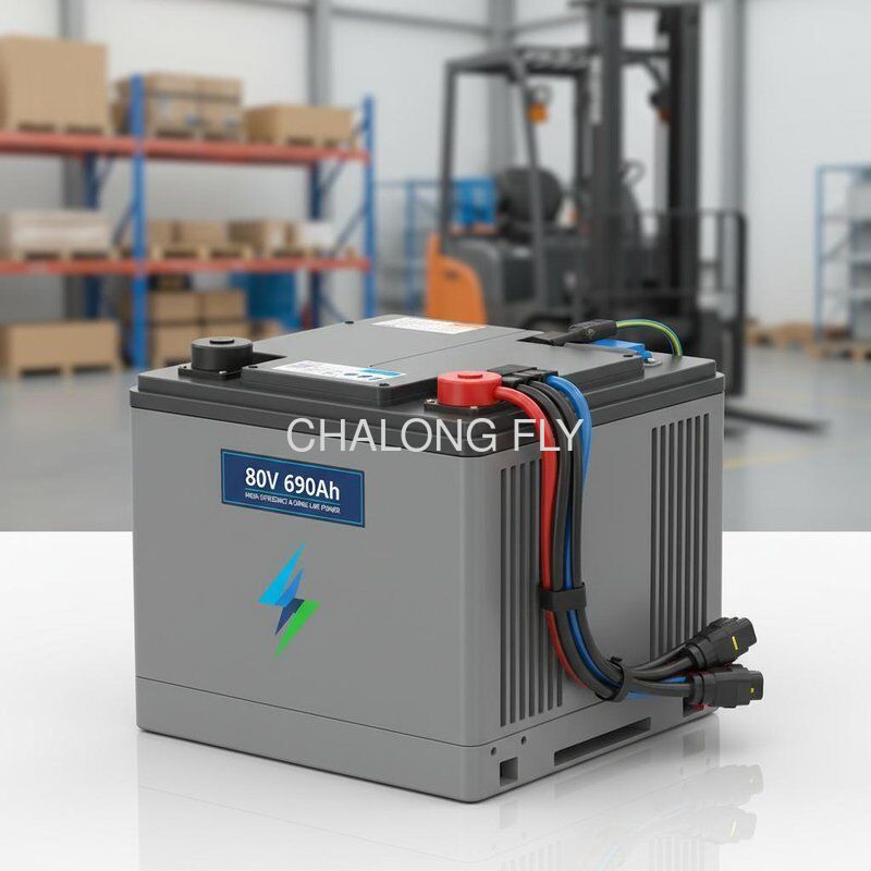แบตเตอรี่ LiFePO4 สำหรับรถยก 80V 690Ah ใช้เซลล์ LiFePO4 อัตราสูงพร้อมพลังงานรวม 55.2kWh ออกแบบมาโดยเฉพาะสำหรับรถยกสวนกลับไฟฟ้าสำหรับงานหนัก 3-7T, รถยกแบบยืดไกลขนาดใหญ่, รถลากจูงสำหรับงานหนัก และระบบ AGV ที่รับน้ำหนักสูง แบตเตอรี่นี้สามารถใช้แทนแบตเตอรี่ตะกั่วกรดที่มีคุณสมบัติเหมือนกันได้โดยตรง โดยไม่ต้องดัดแปลงช่องใส่แบตเตอรี่หรือวงจรของรถยก